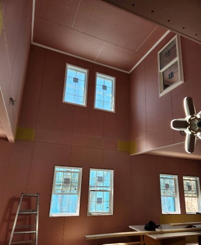 結構な大空間です。クロス工事の時にまた足場を組みます。