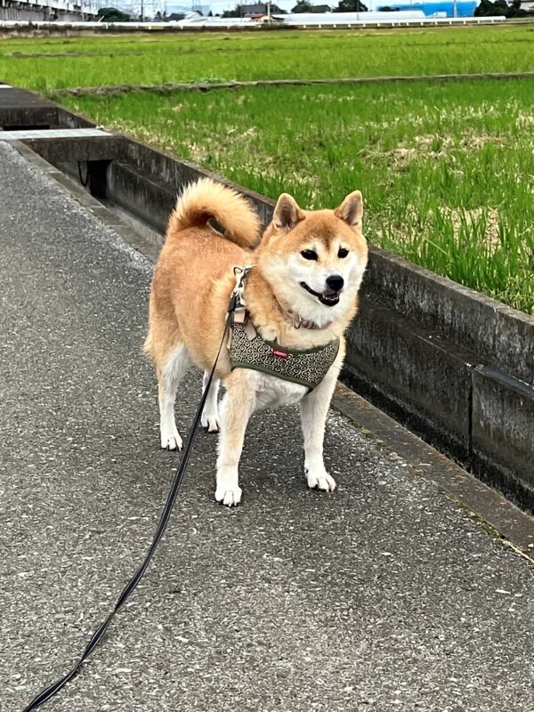 今日の元気の朝の散歩をしております。稲刈りが終わりこれからは秋のお祭りや