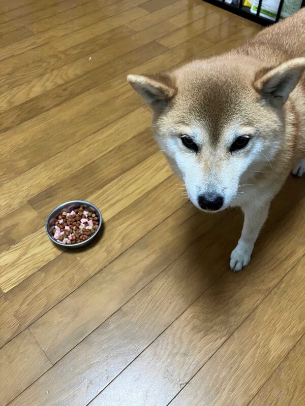 散歩から帰って来て朝ご飯を食べるのですがすぐには食べずひと休みしてからです。