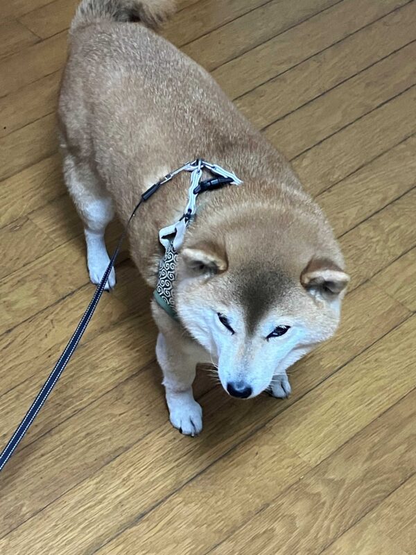 散歩出かける前の(ふう)です。今日は多少眠たげな顔をしています。