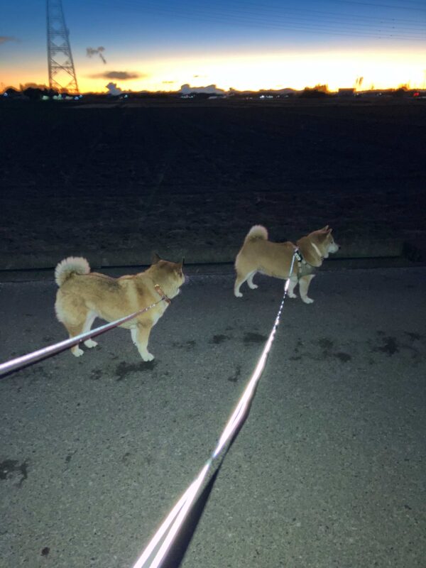 今日の散歩は小梅を連れてとなりました。日が昇る前の為まだうす暗い中です。