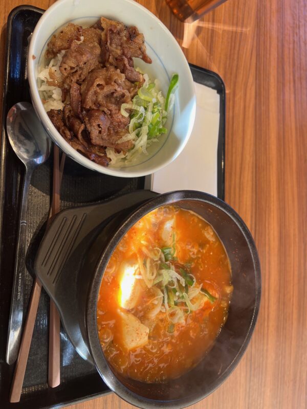 昨日の昼食カルビ丼とスン豆腐セットですが